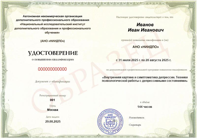 Обзор программы повышения квалификации «Внутренняя картина и симптоматика депрессии. Техники психологической работы с депрессивными состояниями»