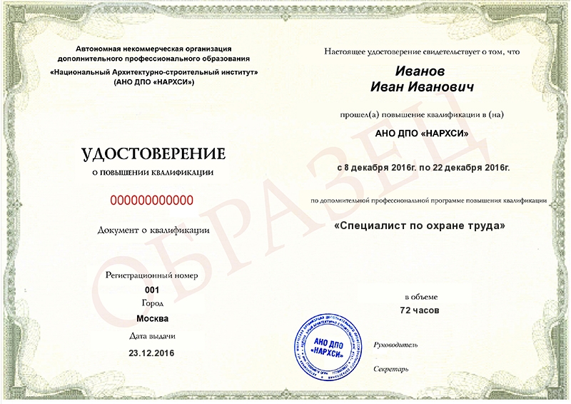 Да, документы оформляются на бланках с защитой от подделок, заполняются на русском языке, в них ставится печать АНО «НИИДПО».