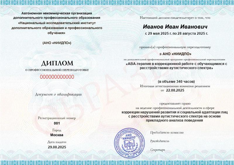 Освойте методы прикладного анализа поведения и получите два диплома: от АНО «НИИДПО» и ЧОУ ДПО «Долина Талантов».