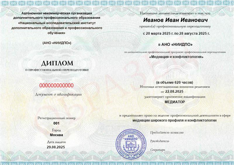 - Квалификация: Медиатор