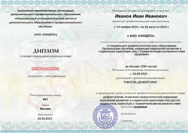 Да, документы оформляются на бланках с защитой от подделок, заполняются на русском языке, в них ставится печать АНО «НИИДПО».