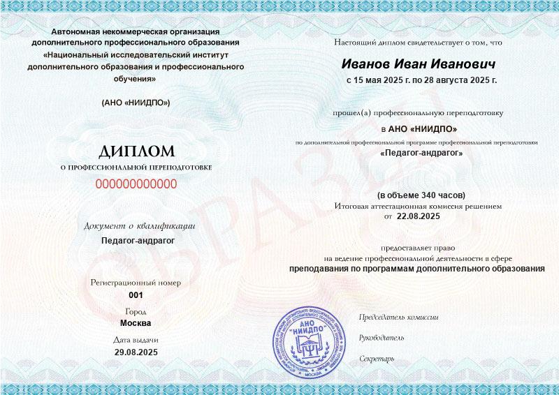 Освойте программу курса для педагога-андрагога за 3,5 месяца и станьте дипломированным преподавателем для взрослых. Научитесь создавать и вести программы дополнительного профессионального образования, давать консультации, обучать взрослых с ОВЗ. Диплом о профпереподготовке позволит официально работать в сфере образования