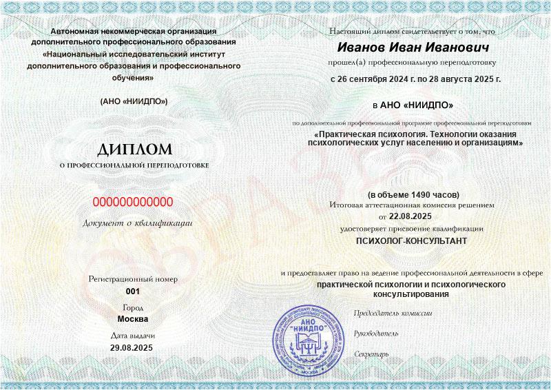 Добрый день, коллеги! Закончила обучение по профессиональной переподготовке по специальности "Практическая психология.Технология оказания психологических услуг населению и организациям". Хочу рекомендовать обучение в данном институте (НИИДПО) для желающих получить профессиональную переподготовку без отрыва от основной работы. В процессе обучения возможна эффективная оперативная поддержка по любым вопросам. Особенно ценно бережное отношение кураторов. Представлены возможности для обучения исходя из имеющегося времени. Дана методология обучения . А насколько глубоко и качественно будем учиться - зависит только от желания каждого студента читать дополнительные материалы, смотреть вебинары и погружаться в изучение профессии. Планирую продолжить обучение по заинтересовавшим направлениям.