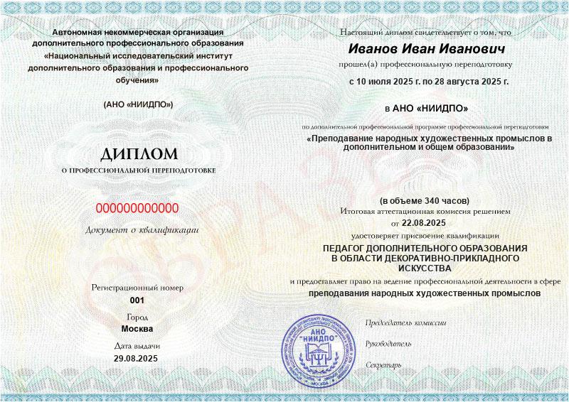 Обзор программы профессиональной переподготовки «Преподавание народных художественных промыслов в дополнительном и общем образовании» с присвоением квалификации «педагог дополнительного образования в области декоративно-прикладного искусства»