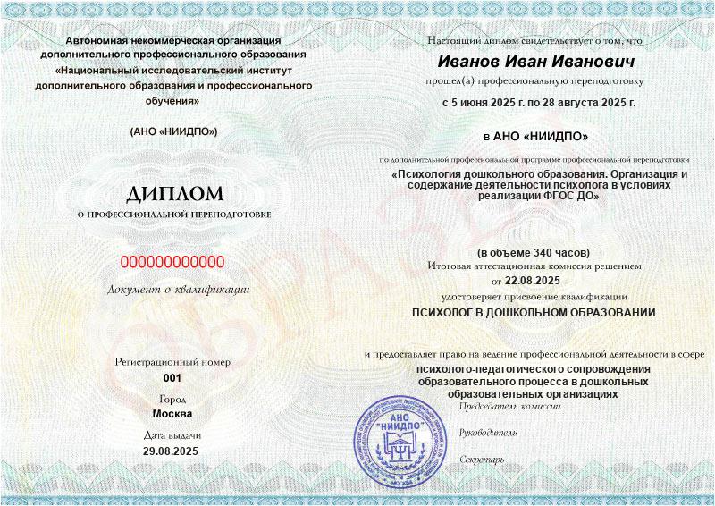 Диплом о профпереподготовке московского институтаДиплом действует на территории всей России и признается государственными и частными организациями