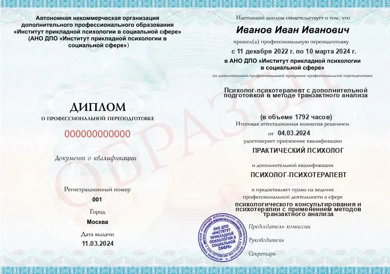 Психолог-психотерапевт с дополнительной подготовкой в методе транзактного анализа (1792ч)