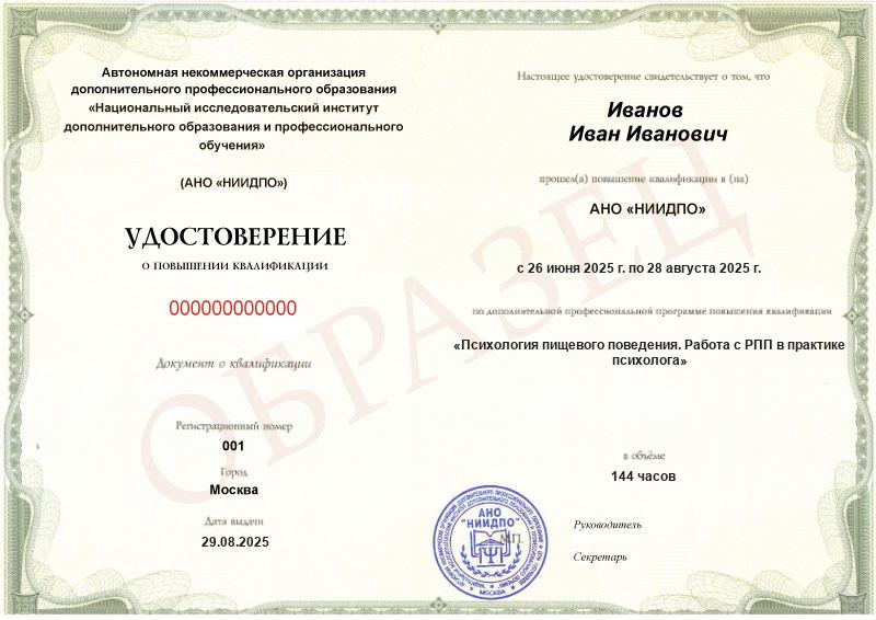 Курс обучения Психология пищевого поведения. Работа с РПП в практике психолога (144ч)