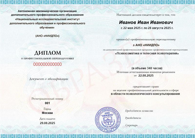 Да, выданный АНО «НИИДПО» диплом предоставляет вам право на ведение профессиональной деятельности в соответствии с квалификацией.