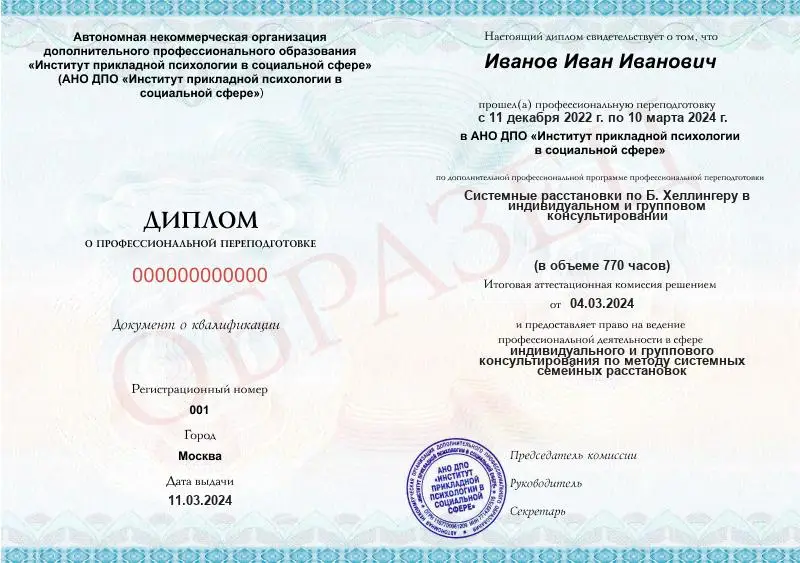 - Диплом о профессиональной переподготовке с правом на ведение профессиональной деятельности