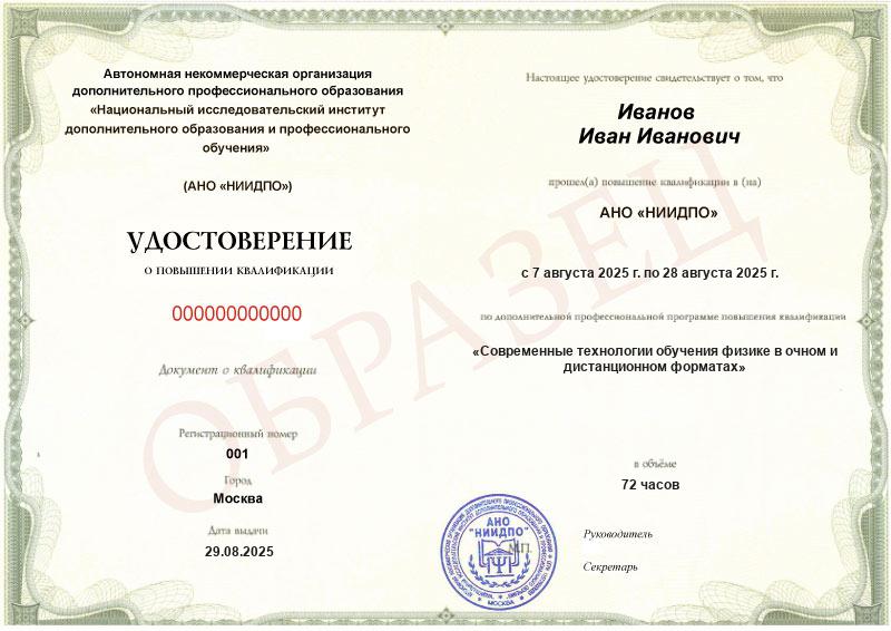 Да, документы оформляются на бланках с защитой от подделок, заполняются на русском языке, в них ставится печать АНО «НИИДПО».