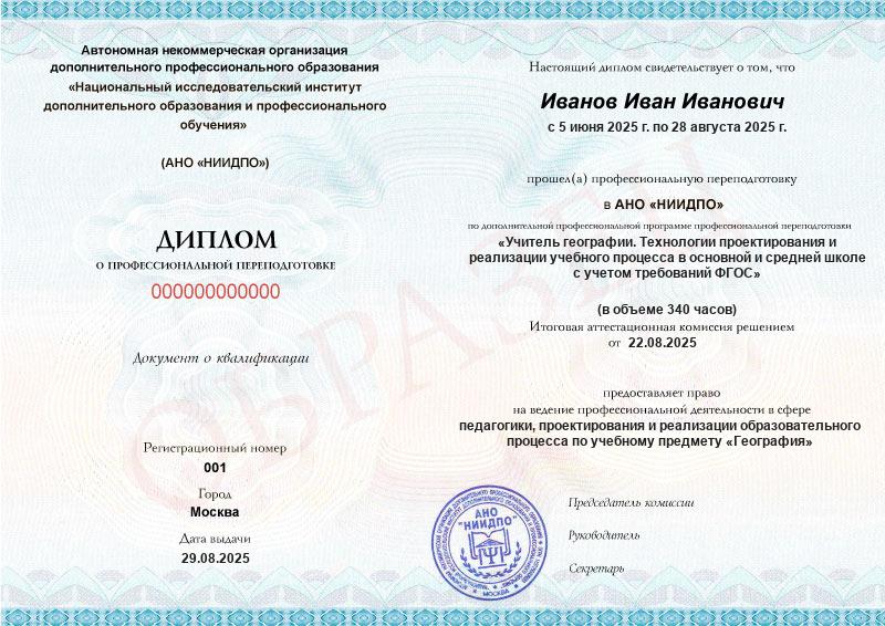 Основная цель обучения географии в школе – формирование целостной системы географических знаний и умений, привитие основ грамотного и рационального природопользования, любви к своей родине и к природе. Школьники также знакомятся с основами экономического и политического устройства мира, осознают место Российской Федерации на мировой арене, изучают главные природные закономерности. Уроки географии особенно увлекательны, если у учителя есть возможность и желание находиться в постоянном поиске всё более точных данных: о демографической ситуации, о найденных месторождениях ископаемых, об экологии того или иного региона. Программа направлена на педагогическую подготовку специалистов, имеющих профильное образование по предметной области «География», к работе в школе. Для тех, кто не имеет профильной подготовки, есть курс «Учитель географии» (620 ч.), включающий предметную область в объёме среднего и основного общего образования.