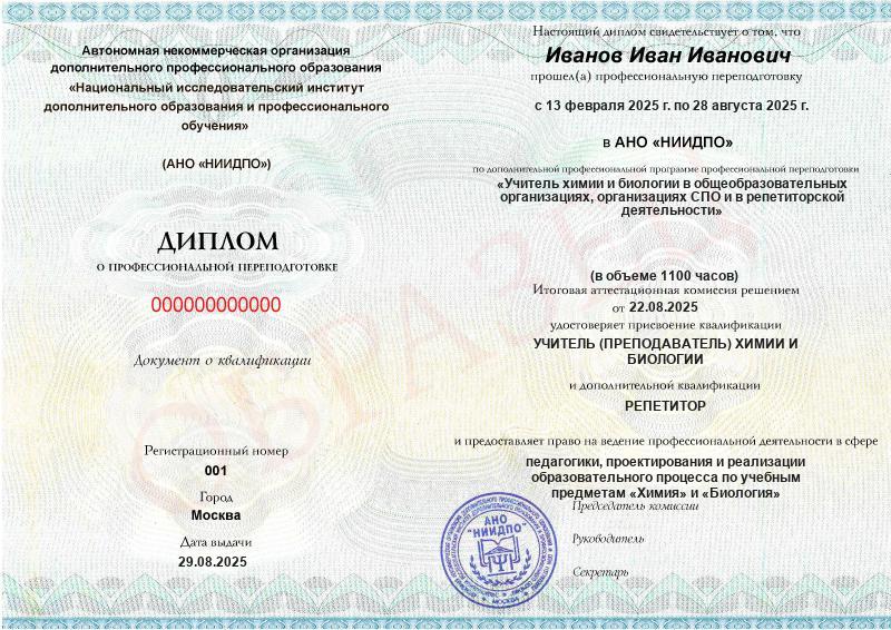 Обзор программы профессиональной переподготовки «Учитель химии и биологии в общеобразовательных организациях, организациях СПО и в репетиторской деятельности» с присвоением квалификации «УЧИТЕЛЬ (ПРЕПОДАВАТЕЛЬ) ХИМИИ И БИОЛОГИИ» с дополнительной квалификацией «РЕПЕТИТОР»