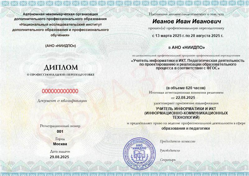 Да, документы оформляются на бланках с защитой от подделок, заполняются на русском языке, в них ставится печать АНО «НИИДПО».