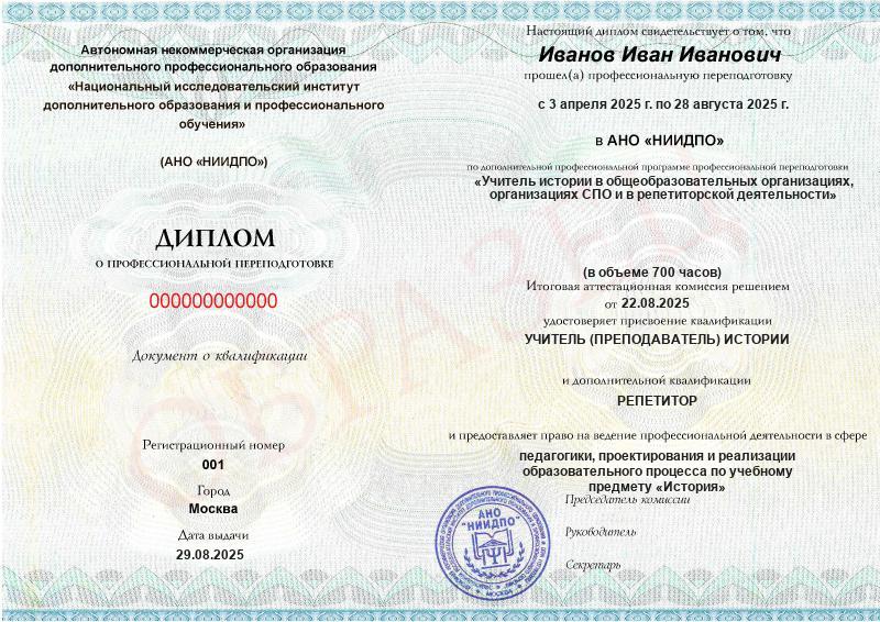 Диплом о профессиональной переподготовке московского института