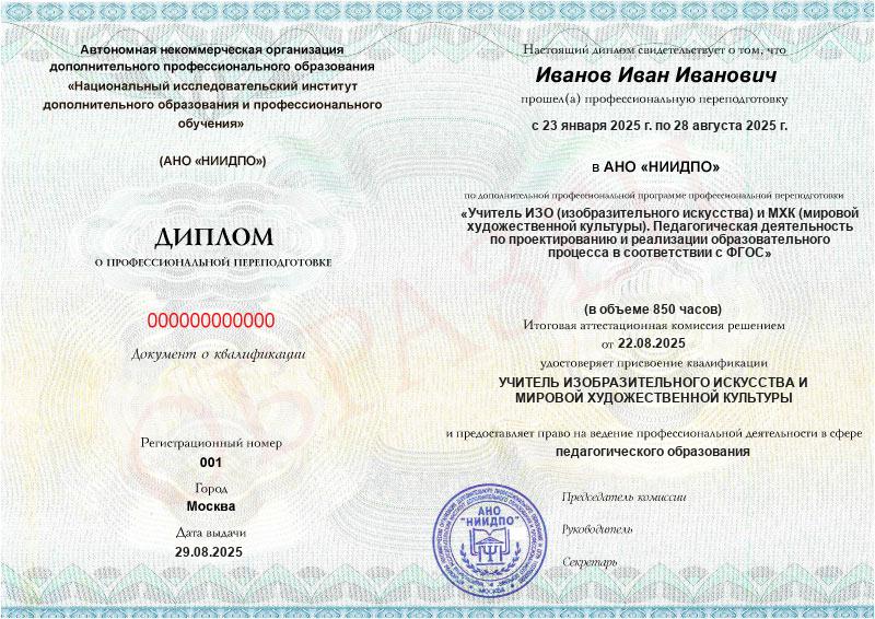 Освойте методики преподавания ИЗО и МХК в основной и средней школе всего за 7 месяцев.