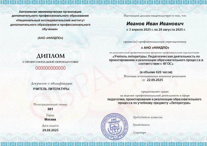 Да, документы оформляются на бланках с защитой от подделок, заполняются на русском языке, в них ставится печать АНО «НИИДПО».