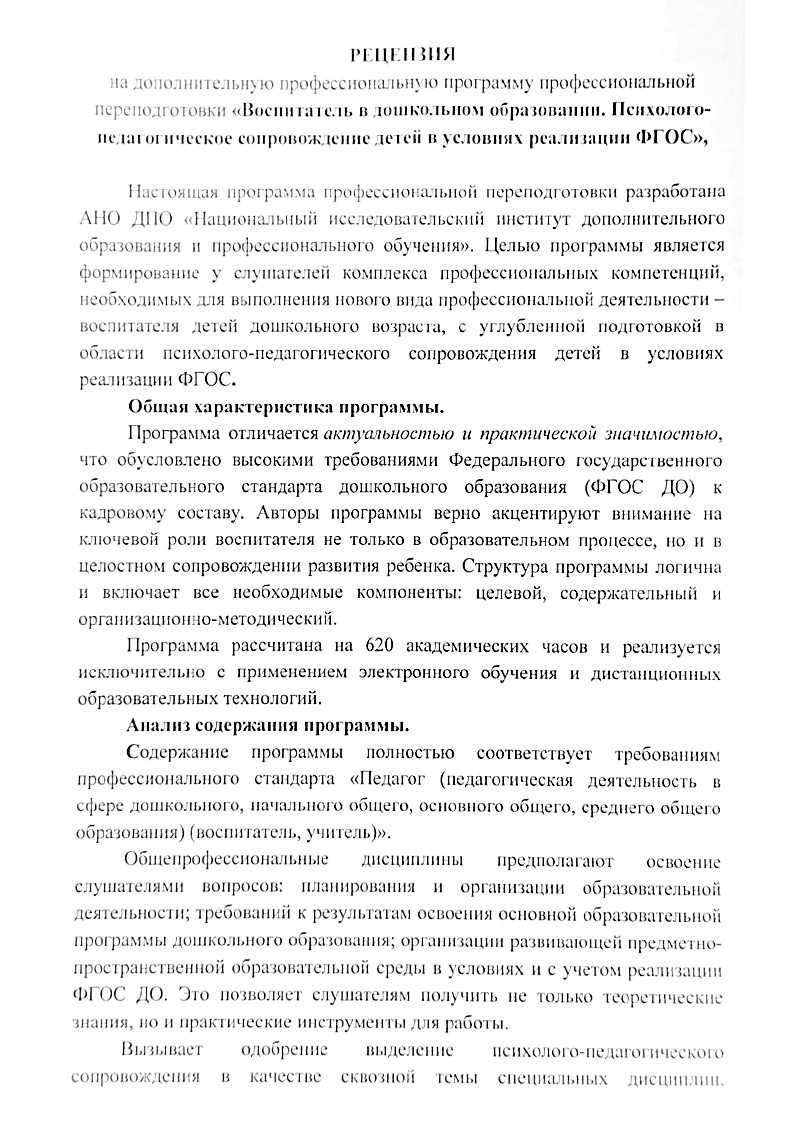 Обзор программы профессиональной переподготовки «Воспитатель в дошкольном образовании. Психолого-педагогическое сопровождение развития детей в условиях реализации ФГОС» с присвоением квалификации «Воспитатель детей дошкольного возраста»